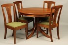 Contemporary Dining table - Tiger Maple Nightstand - Corner Chairs - Hepplewhite Sideboard - Frame and Panel Bed - Piecrust Tea Table
