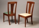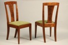 The chairs can be upholstered in high quality Italian Leather or fabrics. Solid Cherry, Mahogany, and Tiger Maple would look equally as impressive in this design. We make custom and reproduction chairs and furniture to order. Contact us if you would like more information.