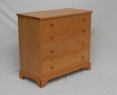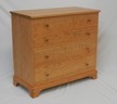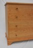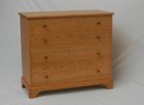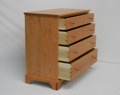 This shaker dresser is handmade of solid cherry and curly cherry. This dresser is decorated with exposed dovetail joinery. This dresser has 4 graduated, fully hand cut dovetail drawers, exposed sliding dovetail joinery on the drawer dividers, and a arched bracket base with exposed hand cut mitered dovetails. This chest has a beautiful hand rubbed natural finish with a soft sheen.