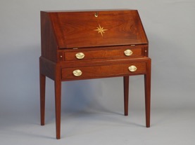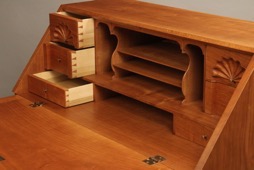 I am sitting at my new secretary desk feeling as if I was in a small town in colonial New England versus sunny Florida. Every part of the experience was great from initial discussions and planning to final design, finish choices, and hardware. Even though I was 1,500 miles away, the updates and pictures maintained a connection throughout the process and I was excited to see each step of the process. The delivery of the piece was done extremely well and I was beginning to use the desk within minutes of the driver arriving at my house. All of my electronic devices fit inside perfectly and with one close of the slant front, it looks as though the piece has gone back in time and could be in a museum. Thank you so much for providing the finest piece of furniture that my wife and I currently own and for your patience and craftsmanship. The piece is truly brilliant and I shall enjoy it for many years to come. I have and will continue to recommend your work to anyone in search of a fine piece of furniture.