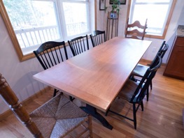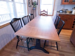 trestle table with a solid cherry wood top but with black painted maple legs to match the Hitchcock